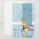 Querido blues de bebê com bolinhas e corações. Girafa, hipopótamo e ovelha em um pote de flores com mais flores e um lindo pato bebê. Perfeito para um chá de fraldas!