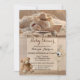 Convite de chá de fraldas, sem distinção de gênero, com animais de pelúcia bonitinhos, com um tema de livro sobre um fundo branco e colorido.