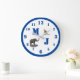 Bichos Cachorros design monogramados apresenta um monograma em letras grandes e claras. Os números de relógio são exibidos em impressão fácil de ler, os 12, 3, 6 e 9 são ligeiramente maiores que o restante dos números. Imagem de um elefante amigável e canguru curioso são mostrados sobre um fundo branco. Todo o design está cercado por um anel marrom. Disponível em várias cores.
