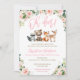 Celebrar as mamães a serem com estes animais da floresta nos convites para o chá de bebê. "Oh veado! Uma doce menina está quase aqui!" Estes convites apresentam um urso pintado com aquarela, raposa, guaxinim e veado. Incluem também as flores pintadas cor-de-rosa e os sotaques dourados. As palavras "Oh veado!" estão escritas numa letra moderna de caligrafia.