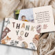Este lindo cartão de agradecimento em aquarela apresenta uma cena caprichosa da floresta, adornada com ilustrações adoráveis de criaturas da floresta. Com modelo de mensagem e foto editáveis para tornar este modelo único pessoal.