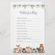 Os animais florestais tematizados de chá de fraldas desejados para o cartão de filhotes apresentam uma ilustração de animais da floresta com cor d'água e verde-aquarela eucalipto garland e uma elegante letra de estilo manuscrito.