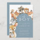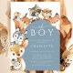 Este convite para chás de fraldas apresenta uma variedade de animais florestais que enquadram um arco moderno em azul, fazer perfeito para um chá de fraldas de meninos. O veado, coelho, raposa, castor, lobo, coruja e guaxinim adicionam um toque de chorona e diversão, enquanto o elegante design de arco mantém o convite polido e sofisticado.