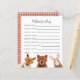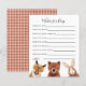 O tema "Woodland" pretende um chá de fraldas neutro em termos de gênero para um cartão de bebê com ilustração dos animais - rapé, urso, coelho. Atividade perfeita para jogar durante o chá e definitivamente será um excelente!