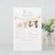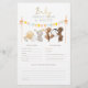 Uma previsão de bebê e um cartão de aconselhamento para corresponder aos nossos convites "Woodland Animal Banda Parade Cute Chá de fraldas". Esta design apresenta uma banda marchante de animais da floresta tocando todos os tipos de instrumentos, acima deles, há boho-bunting em tons de verde, amarelo, rosa, azul e laranja. Há espaço para os convidados escreverem suas previsões de natalidade, previsões de semelhança e conselhos para os novos pais. Exibir a coleção vinculada nesta página para coordenar produtos.