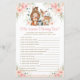 Entretenha seus convidados com nossas seleções de jogos de chá de fraldas divertidos e ideias de atividade. Esta folha de jogo coordenadora apresenta adoráveis animais de madeira de cor d'água e lindas flores cor-de-rosa escamoteadas. Veja os outros jogos de chá de fraldas correspondentes disponíveis na loja! (c) O feliz Cat Studio.