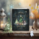 Belo e maravilhoso cartão de Natal dobrável sobre um fundo azul lacrimogêneo apresentando uma ilustração de Natal bonitinha com animais de floresta bonitinhos e algumas estrelas e flores decorativas. Há um gráfico em ambos os lados e dentro na placa. O texto é personalizável. Este cartão pode ser anexado aos presentes de Natal com uma mensagem personalizada para o seu filho.
