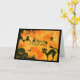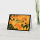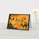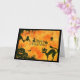 CARTÃO DE RETORNO PRETO E DE LARANJA SILHOUETTE, ANIMAIS DA METADE, BOMBAS E ÁRVORE. DENTRO vazio.