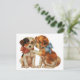 Ilustração vintage de amor e romance com dois cachorrinhos fofos! A cachorrinha fêmea tem um laço rosa e o cachorrinho macho tem um laço azul.