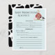 Este cartão de previsão e conselho para bebês, giro e moderno, apresenta um porco, galinha e vaca com um celeiro vermelho sobre um fundo azul-bebê. O verso apresenta um fundo branco com padrões de vacas negras. Personalize para suas necessidades. Você pode encontrar produtos correspondentes na minha loja.