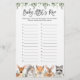 Os animais florestais tematizados com o cartão de corrida do chá de fraldas ABC apresentam uma ilustração de animais da floresta a cores-d'água e verde-d'água eucalyptus garland e uma elegante letra de estilo manuscrito.