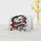 Dê ao seu cartão de Natal um toque selvagem com este retrato de animais de Natal fofo com um dinossauro bebê de chapéu de Papai Noel na frente, fundo de flocos de neve azuis no interior e uma doce mensagem de "Feliz Natal" em uma fonte nevada no interior. Cartão de Boas Festas perfeito para amantes de animais e vida selvagem! Apenas da Yips N' Howls.