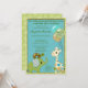 Caracterizando os amigos animais da selva adorável, um elefante, um girafa, e duas tartarugas com máscaras de verde, de marrom, o azul & a laranja. As coordenadas deste convite de MonkeyHutDesign com o fundamento da ucha do bebê do grupo do riso ajustam e podem combinar todo o berçário do tema do safari/selva para uma menina ou o menino/ponto morto (Design#: ISAN-0134).