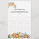 Que comece o nome! Este jogo de Raça do Nome do Chá de fraldas Woodland é rápido, engraçado e cheio de charme florestal. Convidados correm contra o relógio para escrever um nome de bebê para cada letra do alfabeto — enquanto são aplaudidos por adoráveis criaturas florestais como a raposa, o leão, o tigre, o urso, a girafa e o coelho.