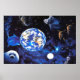 Apresentando um fôlego considerando uma paisagem com Animais no espaço flutuando e a terra no fundo. Esta é uma bela foto nesta poster
