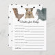 O tema Cute safari chá de fraldas deseja um cartão para bebês com ilustração de animais (rinoceronte, girafa, leopardo). Os textos são editáveis. Atividade perfeita para jogar durante o chá e definitivamente será um excelente!