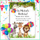 Torne a festa de aniversário do seu filho uma aventura safari com este design de convite. Apresentando uma linhagem de animais da selva, incluindo uma girafa, leão e zebra.