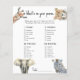 O convite para o chá de fraldas Safari Jungle apresenta uma ilustração aquática de uma girafa, leopardo, elefante e zebra. "Um pouco selvagem está a caminho." Itens correspondentes disponíveis.