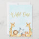 Animais Safari Selvagens Um Aniversário Convite Selva Fúria ou animais safari Primeiro convite de aniversário para um menino com duas girafas, um rinoceronte, leão e tigre. A design também apresenta um título de caligrafia em folha de ouro falso. Esta design é uma maneira fofa de convidar os seus convidados para a primeira festa de aniversário.