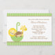 Convites de chuveiro de bebê doce, com um belo trio de animais da selva aninhados em um guarda-chuva de bolinhas verde.