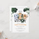 Convite de festas de safari divertido, com o tema do primeiro aniversario, com vegetação tropical e animais da selva fofinha (tigre, girafa e hipopótamo). Este modelo de aniversário é muito fácil de personalizar! Veja esta coleção divertida de temas safari para tornar inesquecível a sua festa!