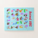 Animal ABC Design Jigsera Quebra-cabeça com cor de fundo personalizável e texto de linha superior. 30 peças de tamanho excessivo são perfeitas para crianças pequenas, mas você pode mudar sua seleção para vários tamanhos e graus de dificuldade.