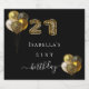 Para uma aniversário de 21 anos elegante. Um fundo preto, decorado com balões. O número 21 é escrito com uma fonte do estilo do balão, padrão leopardo. Personalize e adicione um nome e uma data. A palavra aniversário é escrita com um moderno estilo escrito à mão com traços.