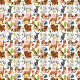 A vibrant, animated scene unfolds featuring a playful array of cartoon dogs in various poses and expressions. The camera performs a gentle zoom in, showcasing the lively interactions among the dogs as they chase butterflies and sniff flowers. The backdrop is a colorful garden filled with leaves and blossoms, enhancing the cheerful atmosphere. Soft, diffused lighting bathes the scene in warmth, creating a joyful, inviting mood. The animation flows smoothly, capturing the essence of a delightful day in the park.