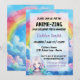 Um convite para seu anime fanático. Ela mostra uma anime com cabelos arco-íris com fundo de arco-íris e nuvens.