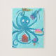 Este quebra-cabeça bonito faria um grande presente de aniversário para um miúdo ou um adulto especialmente se apreciam quebra-cabeça. Este quebra-cabeça mede 8" x10" e vem em um recipiente da lata com do "a imagem do aniversário polvo" na parte superior. Há 110 partes neste quebra-cabeça. Este quebra-cabeça caracteriza meu desenho de lápis original da cor de um polvo que comemora um aniversário.