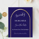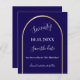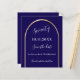 A Save the Date card for a 70 (or any age) festa de aniversário (Salvar a placa de data para uma (ou qualquer idade). Um fundo azul escuro, decorado com um arco de ouro falso. Personalize e adicione uma data e seu nome. O texto: Setenta e Salvar a Data é gravado com um script de estilo com letra de tendência grande. 1 folha = 1 Salve a data da borda impressa para a borda.