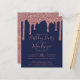 Convite de aniversário com respingos de brilho dourado rosa para qualquer ano, apresentando respingos de brilho falsos e fundo azul marinho chique. Ainda é lindo, mas um estilo de papel mais delicado e menos caro. Se precisar de ajuda ou de itens correspondentes, entre em contato conosco em cedarandstring@gmail.com.