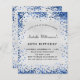 Para um elegante aniversário de 40 anos (ou qualquer idade). Um fundo de olhar mal prateado. Decorado com brilho azul marinho, brilhos. Personalize e adicione um nome, idade e detalhes da festa. O nome é escrito com um script de estilo manuscrito
