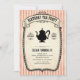 Estes convites de festas de chá de aniversário têm um design vitoriano com um fundo listrado de cor-de-rosa suave.