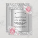 Aniversário, cor-de-prata rosa-floral convite