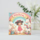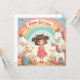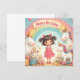 Adorável design de aniversário com unicórnios, um arco-íris, presentes e uma garota sorridente - perfeito para produtos, convites para crianças ou decoração infantil.