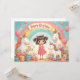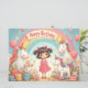 Adorável design de aniversário com unicórnios, um arco-íris, presentes e uma garota sorridente - perfeito para produtos, convites para crianças ou decoração infantil.