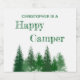 Feliz aniversário de camper com árvores florestais em vários tons de verde