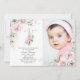 Este Convite de aniversário para meninas 1 rua apresenta quadro fotográfico, rosas cor-de-água cor rosa-claro-romântica, pinças e folhas verdes empoeiradas e texto caligrante. O reverso deste convite é cor-de-rosa esbranquiçado com lavagens de aquarelas. Este convite inspirador é perfeito para um aniversário de uma rua. Aproveite!