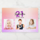 Um rótulo de garrafa para uma noite de aniversário de 21 anos glamourosa com as garotas. Personalize e adicione um nome, 21 anos e uma data. Data de nascimento ou data da festa. Letras coloridas de cinzas roxas e escuras. Adicione 3 das suas próprias fotos. Um fundo cinzento e tenso arco-íris colorido em ouro roxo, rosa e rosa. O texto: Legal está escrito sobre as fotos como uma marca d'água.