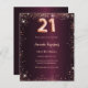 Para um aniversário de 21 anos elegante. Uma cor de fundo de gradiente burguês. Decorado com pó brilhante de ouro rosa. Personalize e adicione um nome e detalhes da parte. O nome é escrito com um script de estilo manuscrito. 1 folha = 1 convite impresso de borda a borda.