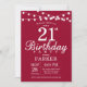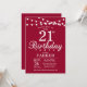 aniversário de 21 anos com luzes de cordas. Fundo Vermelho Burgundy. 13 15 16º 18º 20 21rua 30 40º 50º 60º 80 de 70 100º, qualquer idade. Para mais personalização, clique no botão "Personalizar" e use nossa ferramenta de design para modificar este modelo.