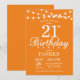 aniversário de 21 anos com luzes de cordas. Fundo Laranja. Homens ou mulheres Lady Elegant Convidam. 13 15 16º 18º 20 21 rua 30 40º 50º 80 de 60º 70 de 100º, qualquer idade.