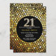 Convite para aniversário de 21 anos. Glitter preto e Dourado. Diamante Dourado. Festa de aniversário adulta. Para Homens ou Mulheres. Para mais personalização, clique no botão "Personalizar" e use nossa ferramenta de design para modificar este modelo.