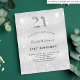 Um convite moderno, na moda e glamouroso para um aniversário de 21 anos. Um fundo com aparência de prata falsa, decorado com poeira brilhante. Personalize e adicione o seu nome e detalhes da festa. O número 21 é escrito com uma fonte de estilo balão, script.