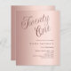Um convite moderno e na moda para uma festa aniversário de 21 anos. fundo de gradiente rosa dourado e a palavra 21 escrita com letras elegantes e grandes em ouro rosa escuro. Personalize e adicione um nome e detalhes da parte. 1 folha = 1 convite impresso de borda a borda.