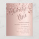 Um convite moderno e na moda para uma festa aniversário de 21 anos. fundo de gradiente rosa dourado e a palavra 21 escrita com letras elegantes e grandes em ouro rosa escuro. Decorado com estrelas. Personalize e adicione um nome e detalhes da parte. 1 folha = 1 convite impresso de borda a borda.