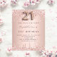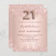Um convite moderno, na moda e glamouroso para um aniversário de 21 anos. Um fundo metálico rosa dourado falso com um brilho elegante rosa dourado, pintura gota-a-gota. O nome é escrito com um moderno e escuro, rosa dourado, escrito com letra de estilo manuscrito. Personalize e adicione os detalhes da sua festa. O número 21 é escrito com uma fonte de estilo balão, script.