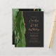 A borda esquerda deste elegante convite de aniversário moderno apresenta um caçador de aquarela verde agata borda com brilho dourado. O texto personalizável combina o script dourado e as fontes sans serif em um fundo preto de slate. O verso apresenta um design verde e dourado correspondente.