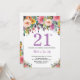 Convite para aniversário de 21 anos Floral para Mulheres. Flor Floral de Aquarela. Rosa, Amarelo, Laranja, Flor Roxo. Aniversário Adulto. 30 40th 50th 60th 80 de 70 de 100th 13 de 16th 18th 20 21rua de qualquer idade. Para mais personalização, clique no botão "Personalizar" e use nossa ferramenta de design para modificar este modelo.